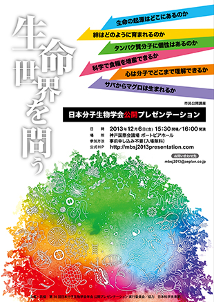 日本分子生物学会 公開プレゼンテーション 「生命世界を問う」 メインビジュアル 2013年12月6日 ポートピアホール(神戸) 2013年 |