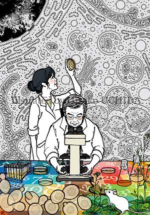 新学術領域 『植物細胞壁の 情報処理システム』 PJ満了記念イラスト 班会議にて贈呈されました。 2017年 |